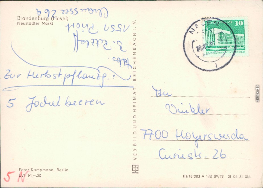 vintage Postcard from 1972: Neustädter Markt:: Brandenburg an der Havel Address side Detail image Detail image