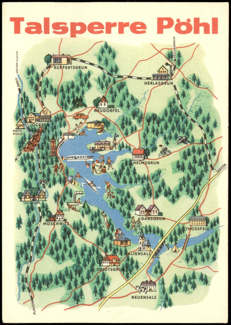 Postcart: Landkarte: Talsperre Pöhl - Pöhl