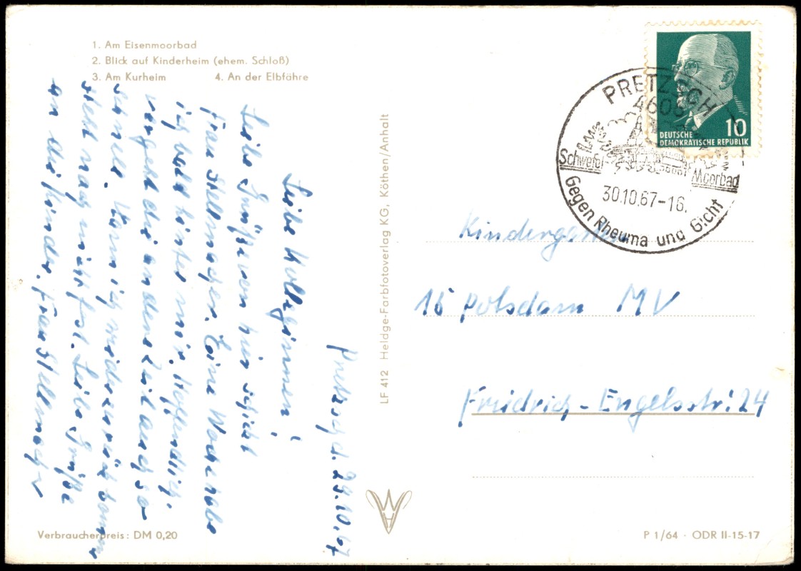 Postcart: Eisenmoorbad, Kinderheim, Kurheim, Elbfähre - Pretzsch (Elbe)-Bad Schmiedeberg