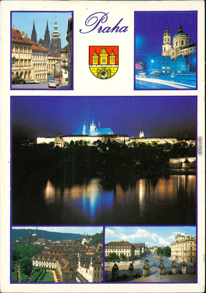 Postcart: Ortsmotive, Panorama bei Nacht mit Beleuchtung, Überblick, Schloss - Prague