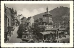 Postcart: Springbrunnen, Kulturhäuser, Plastiken, Schloss, Luftbild - Karlovy Vary