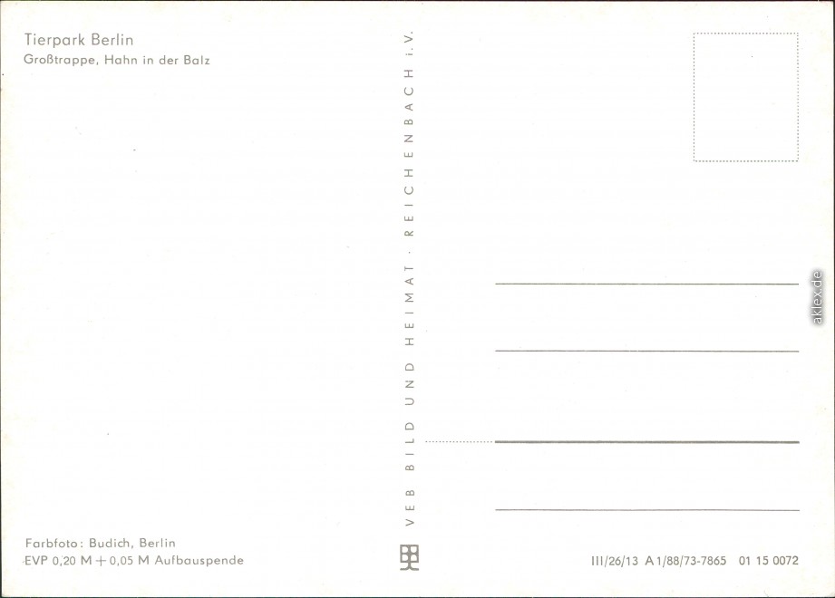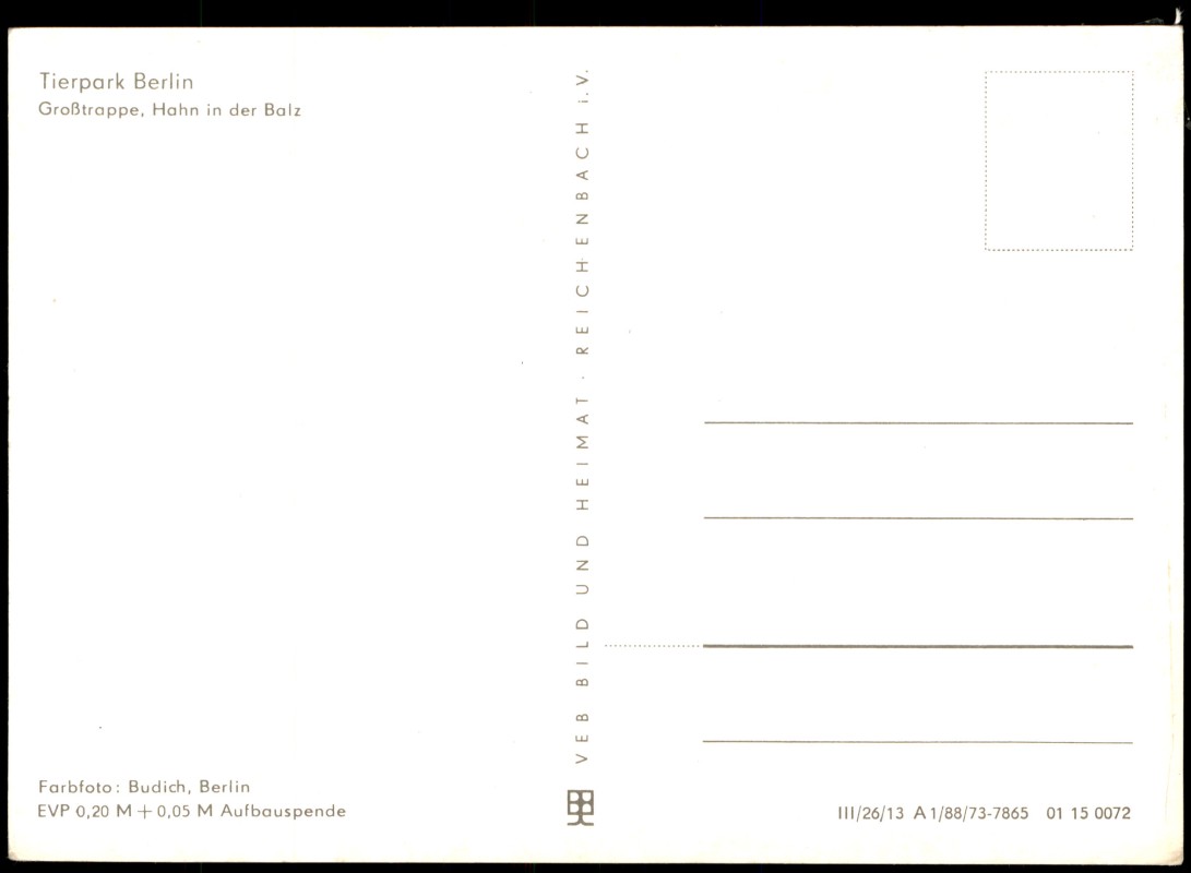 Postcart: Tierpark - Großtrappe, Hahn in der Balz - Friedrichsfelde-Berlin