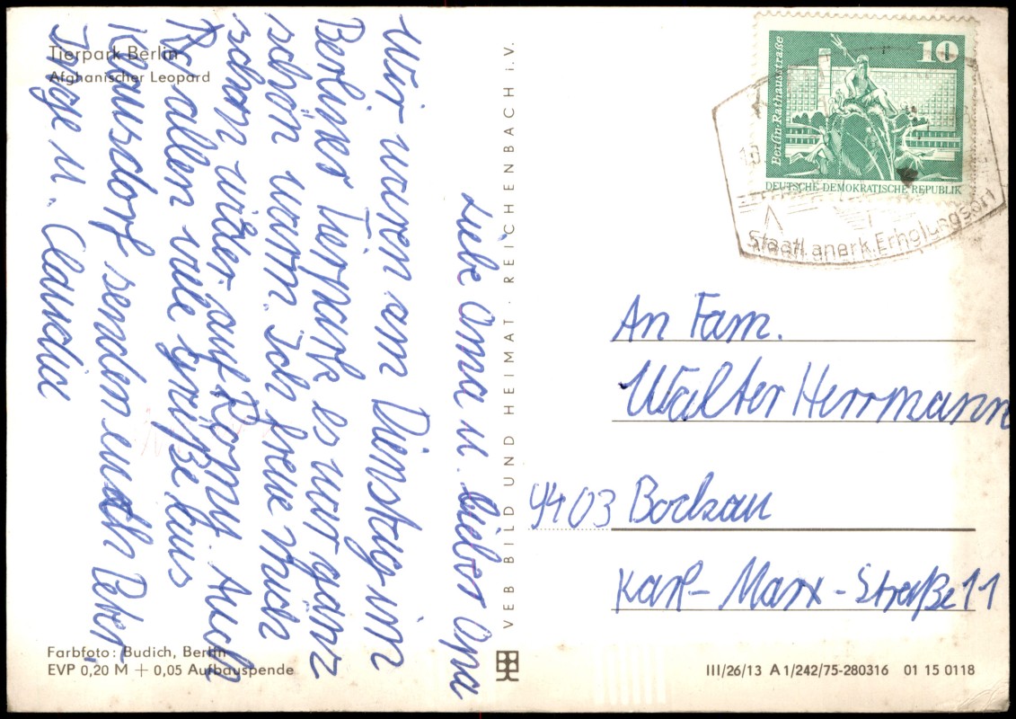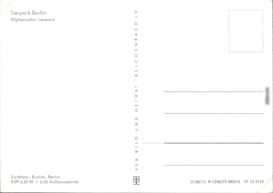 Postcart: Tierpark: Afghanischer Leopard - Friedrichsfelde-Berlin