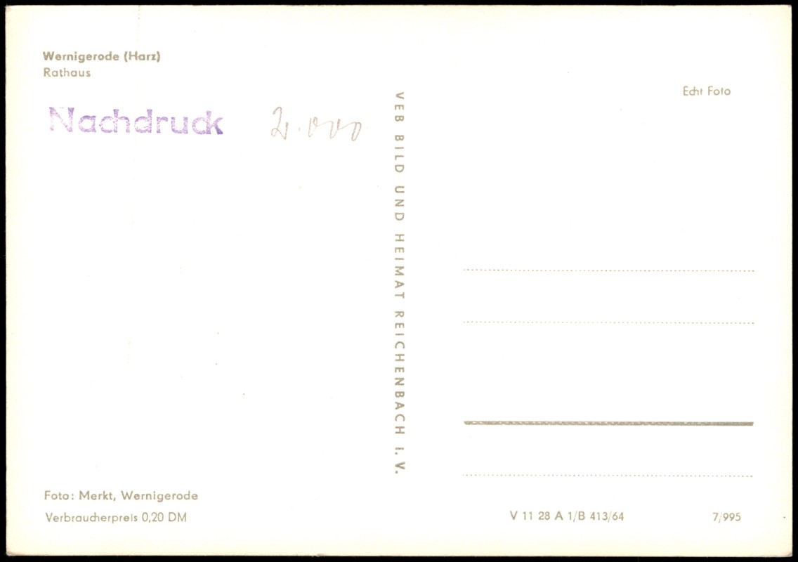 - Ansichtskarte Wernigerode Rathaus 1964