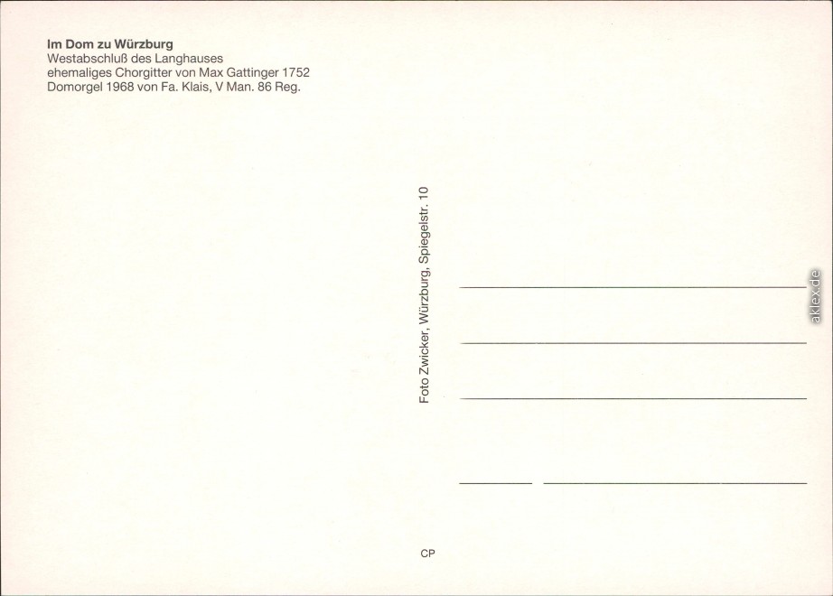 Postcart: St. Kiliansdom zu Würzburg - Westabschluss des Langhauses - Würzburg