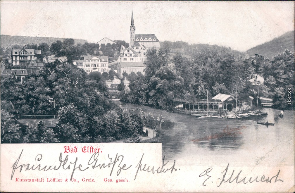Postcart: Panorama mit Yachthafen und Kirche - Bad Elster