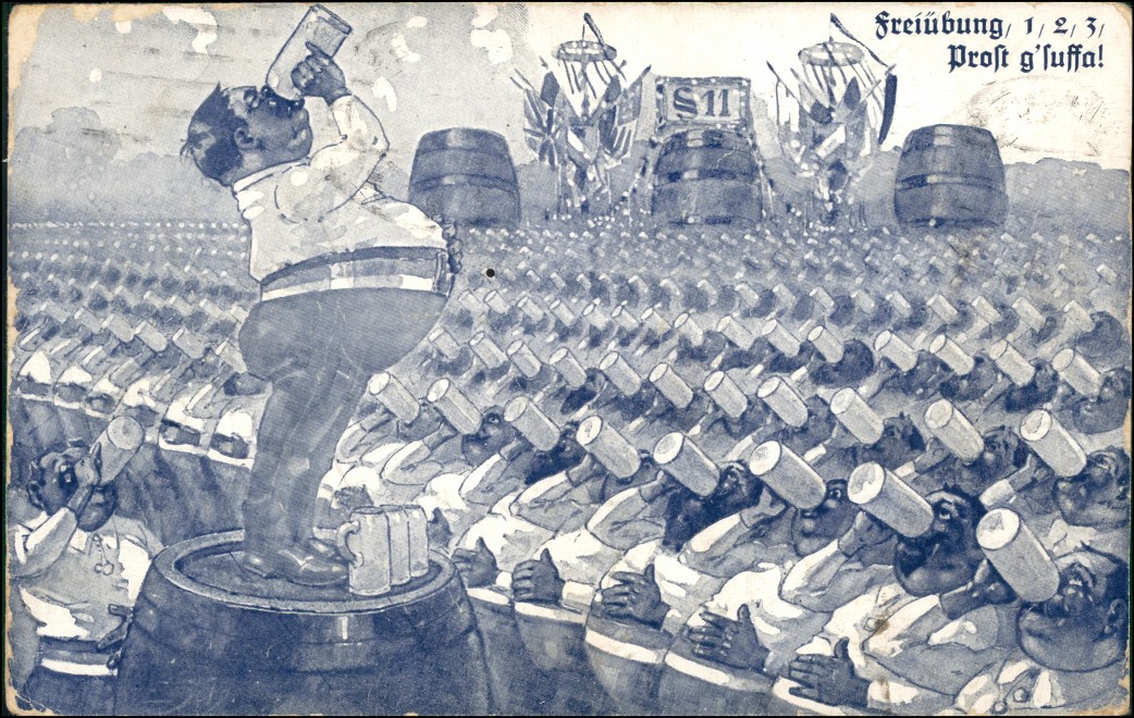 Postcart: Scherzkarte 1,2,3, Prost g'suffa - trinken Bier
