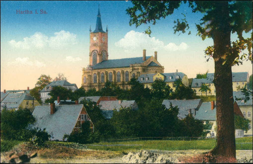 Postcart: Häuser mit Kirche - Hartha