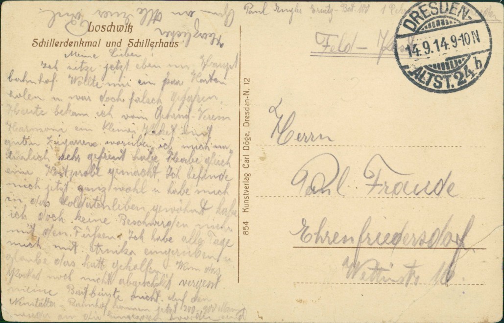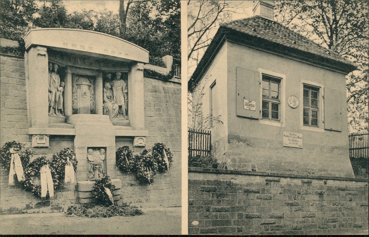 Postcart: 2 Bild: Schillerhaus und Denkmal - Loschwitz-Dresden