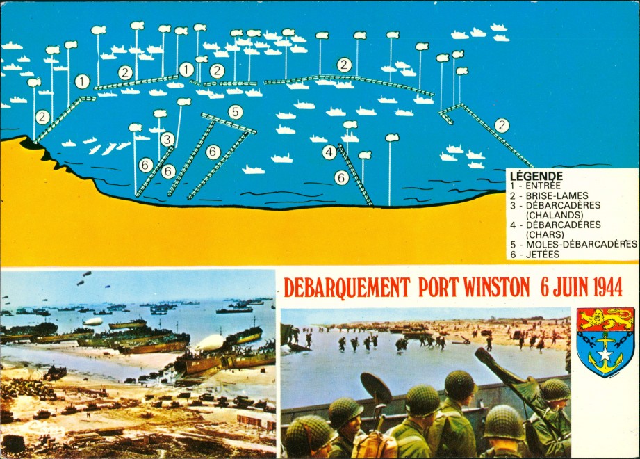 Postcart: Débarquement PORT WINSTON, Landungsübersicht anno 1944