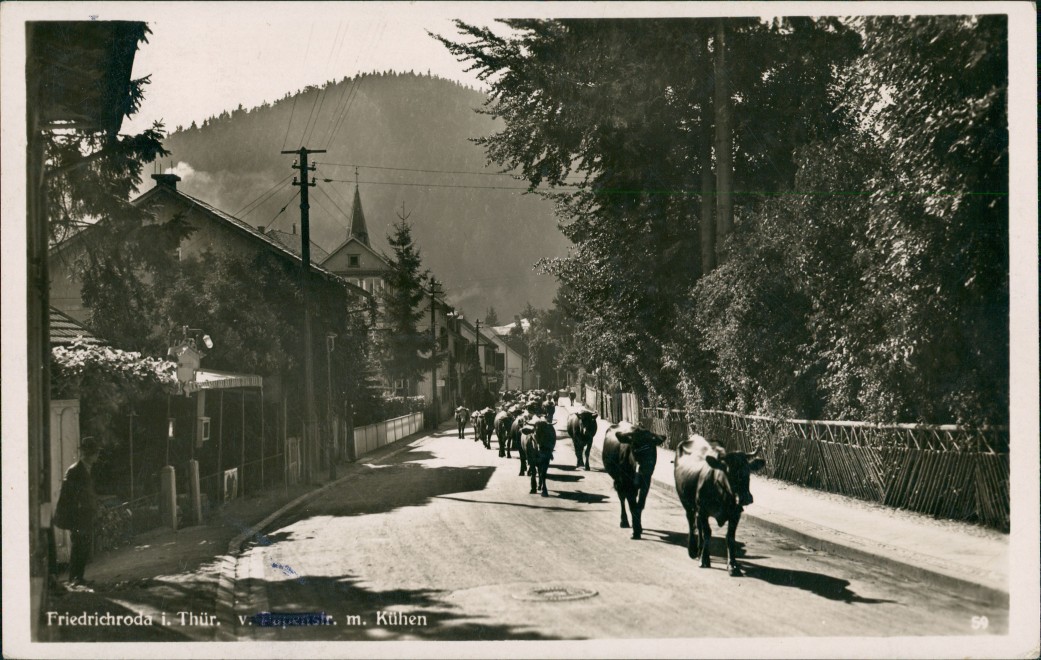 Postcart: Papenstraße mit Kühen - Friedrichroda