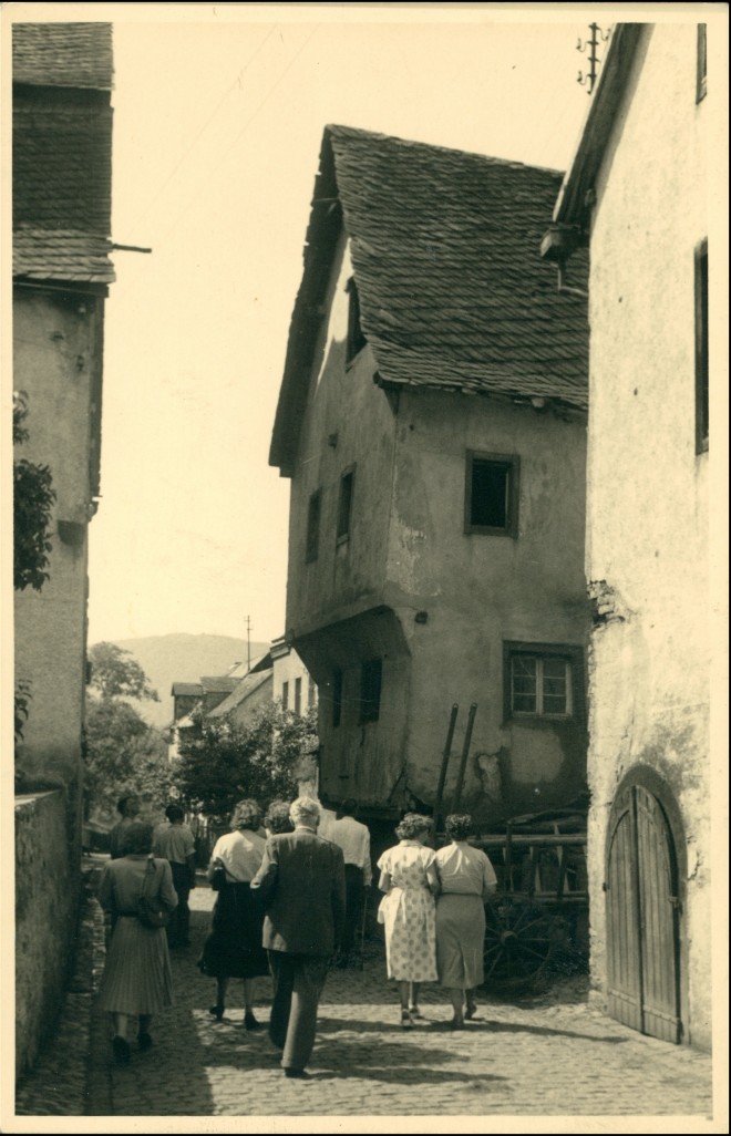 Photo Card: Privatfoto Personen eines Betriebs-Ausfluges vor altem Wohnhaus - Bruttig-Fankel