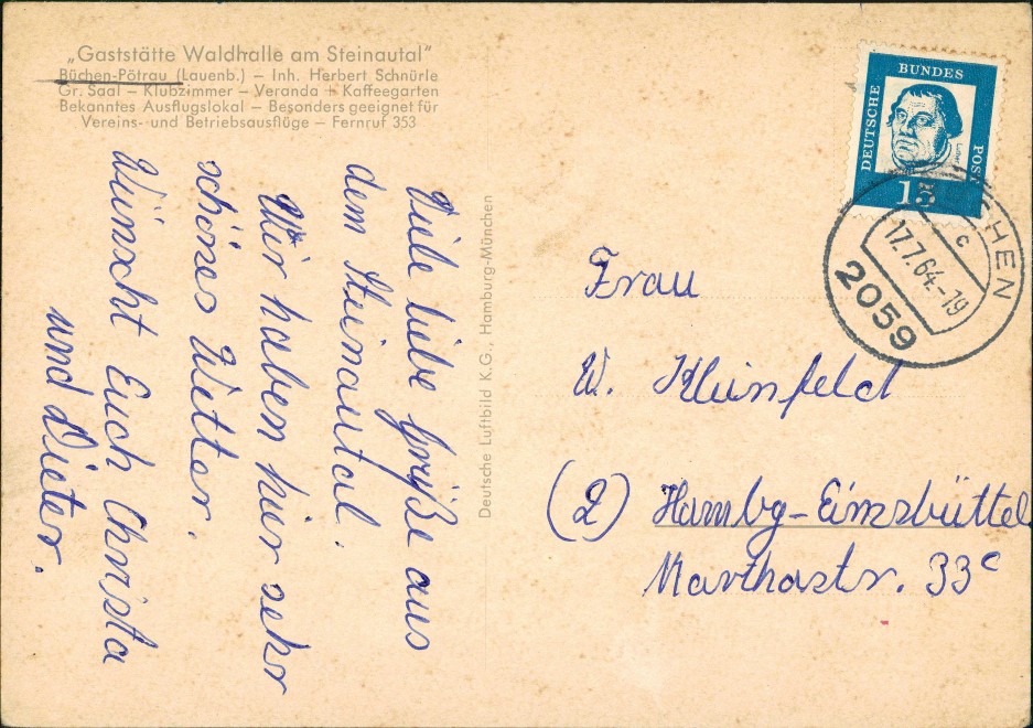 Postcart: „, Gaststätte Waldhalle am Steinautal" 4 Bild - Pötrau-Büchen (b Lauenburg)