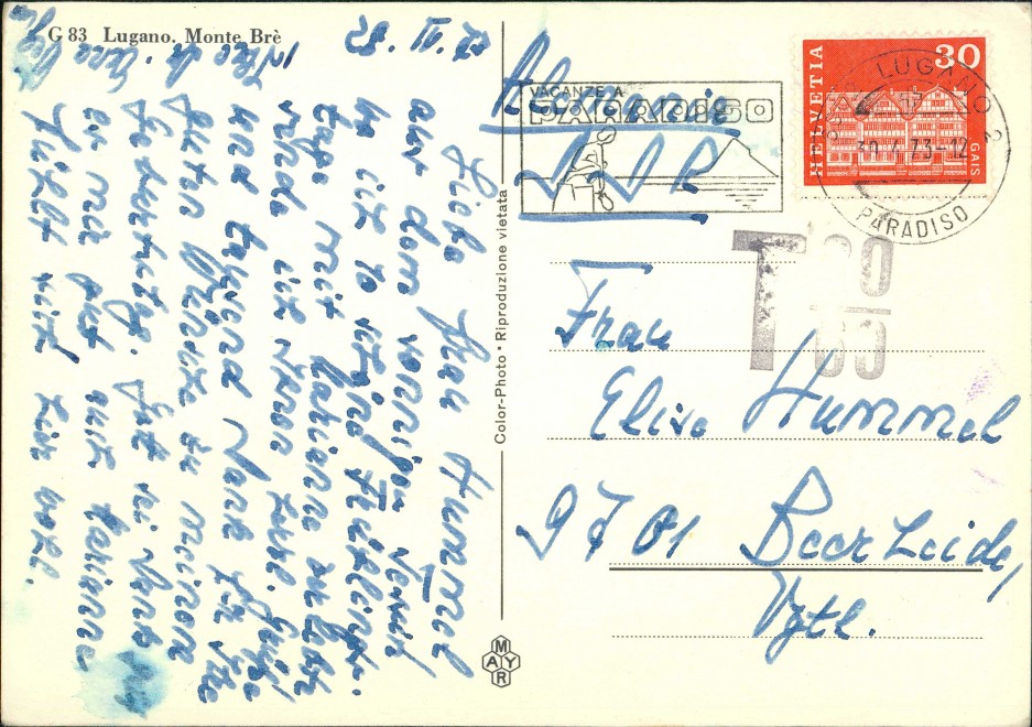 Photo Card: Panorama-Ansicht mit Berg, Monte Brè - Lugano