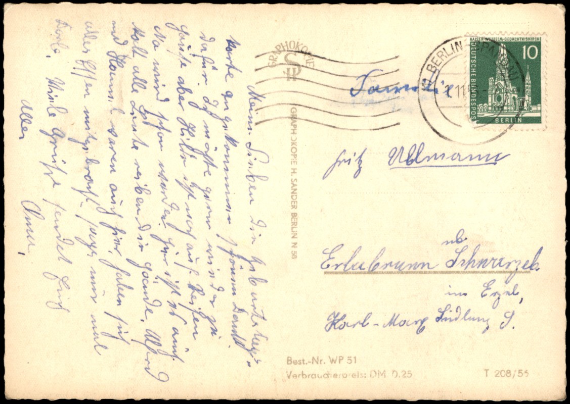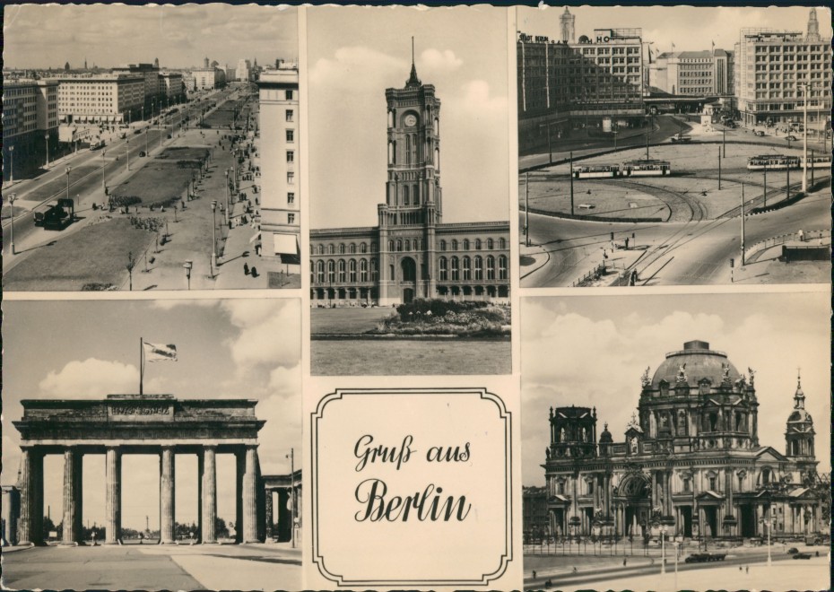 vintage Postcard from 1956: DDR Mehrbildkarte Berlin OST, 5 Echtfoto-Ansichten:: Berlin Address side Detail image Detail image