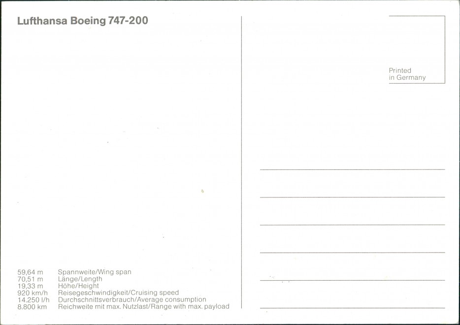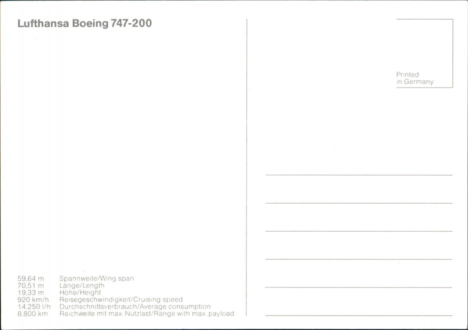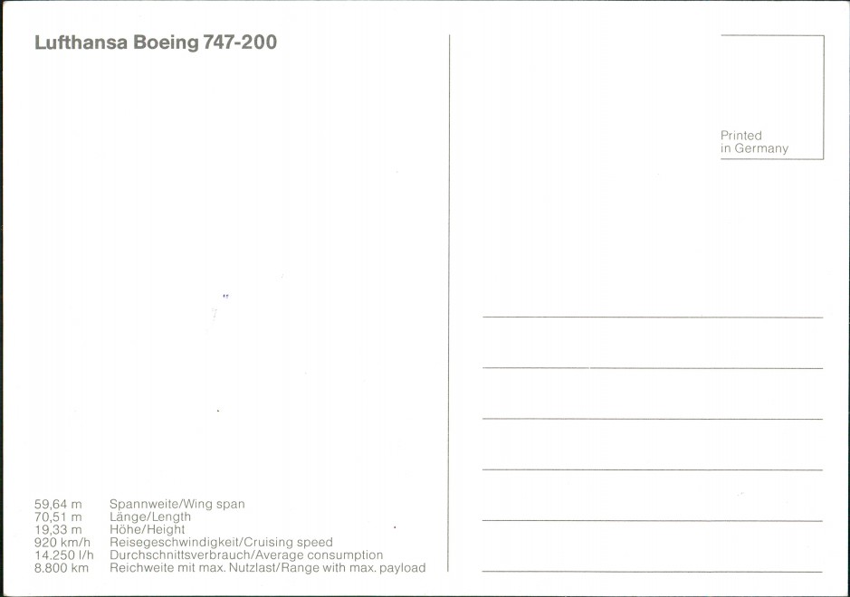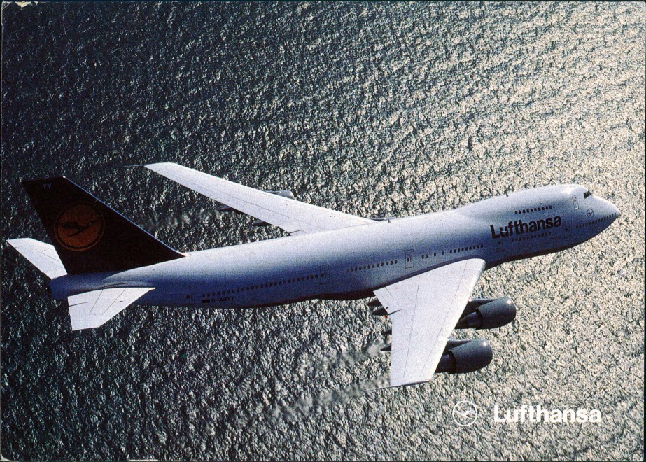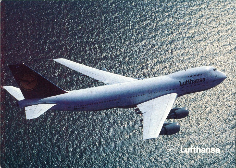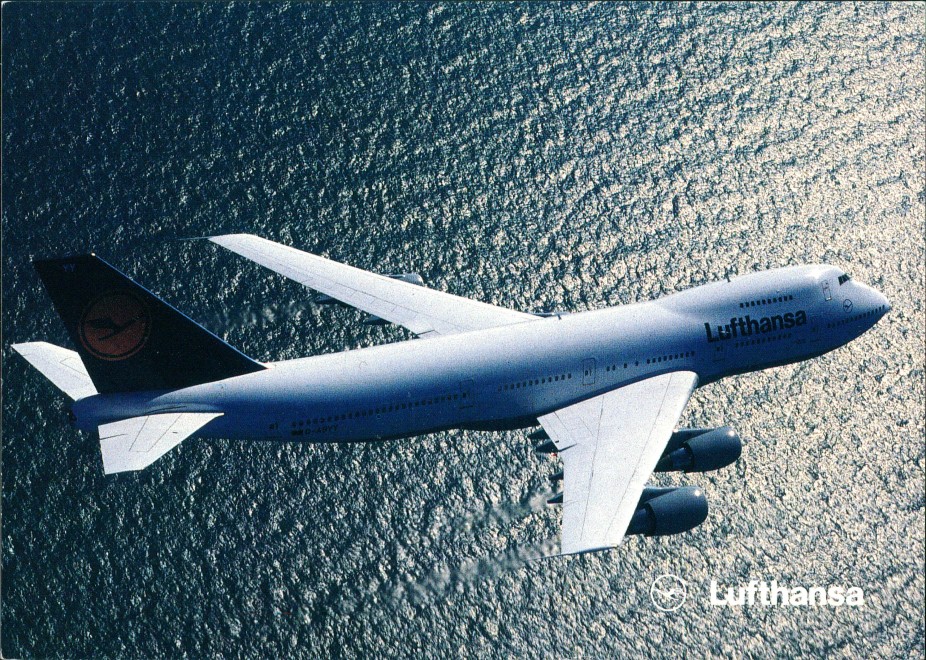 Postcart: Lufthansa Boeing 747-200 Flugwesen - Flugzeuge über dem Meer