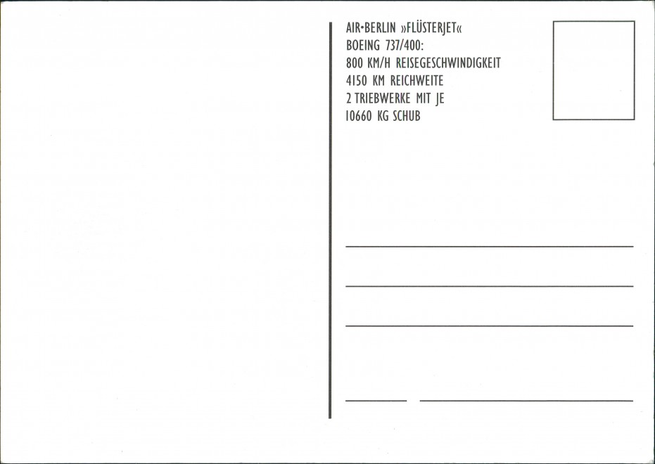 Postcart: AIR.BERLIN » FLUSTERJET« BOEING 737/400: Flugwesen - Flugzeuge