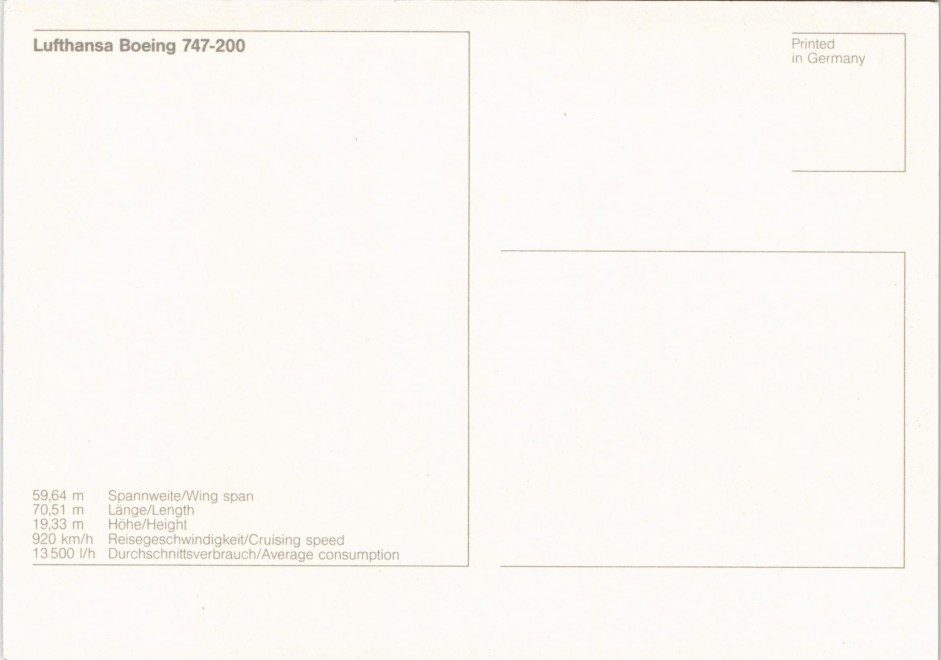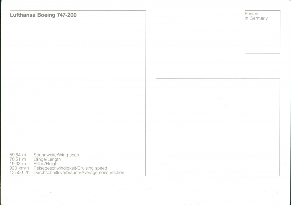 Postcart: Lufthansa Boeing 747-200 Flugwesen - Flugzeuge