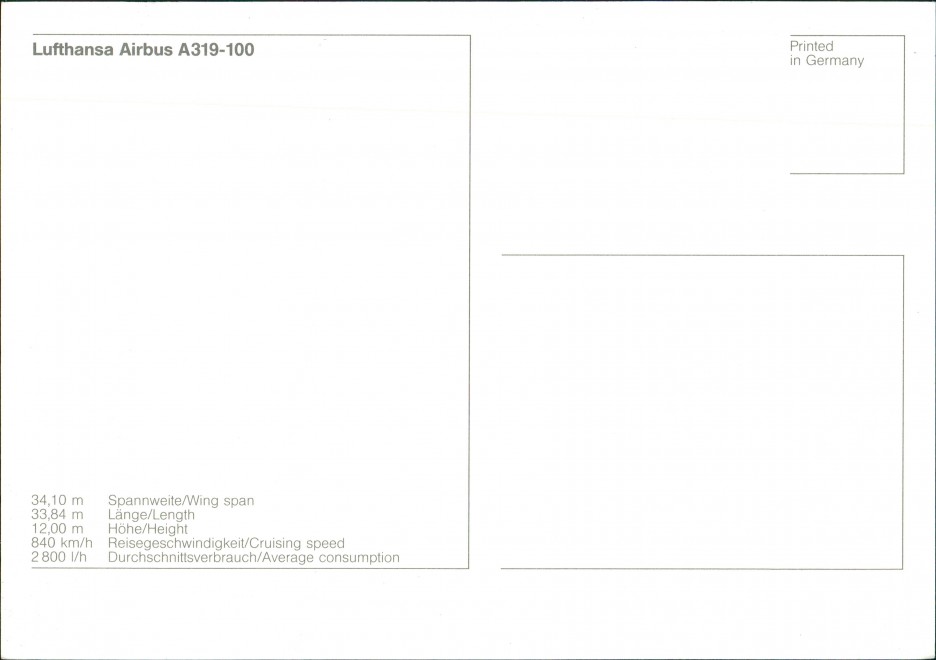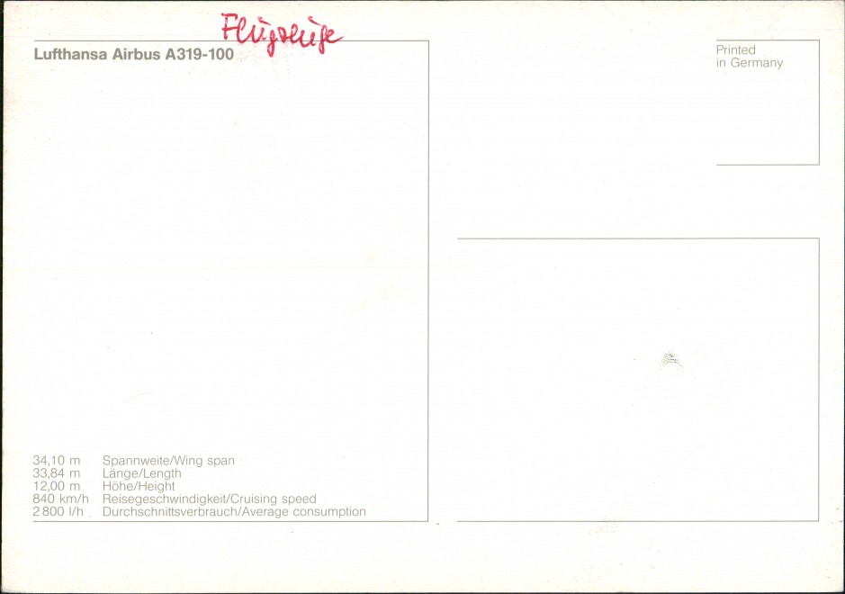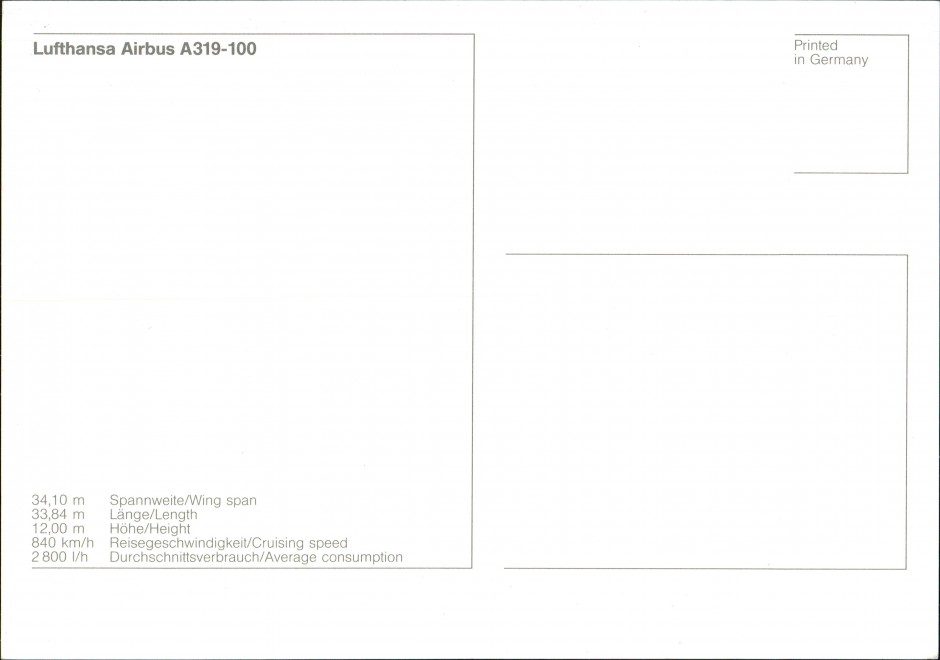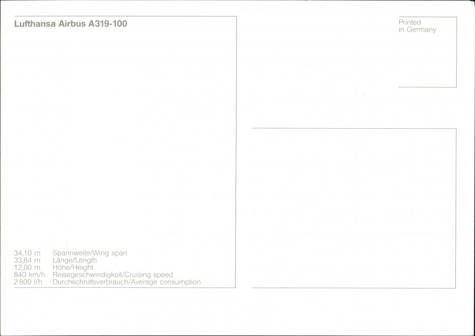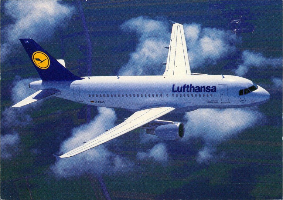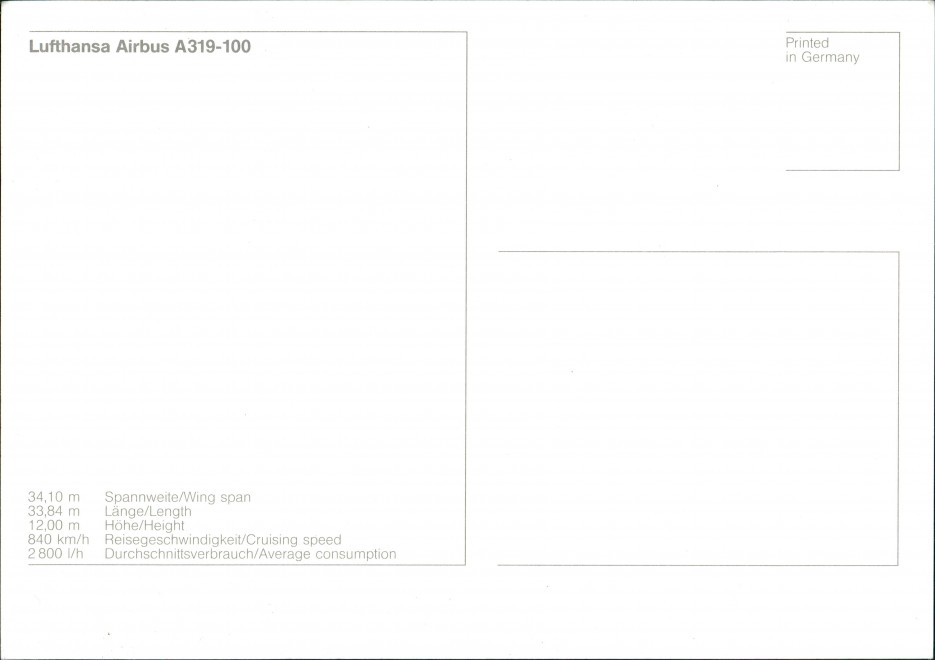Postcart: Lufthansa Airbus A319-100 Flugwesen - Flugzeuge