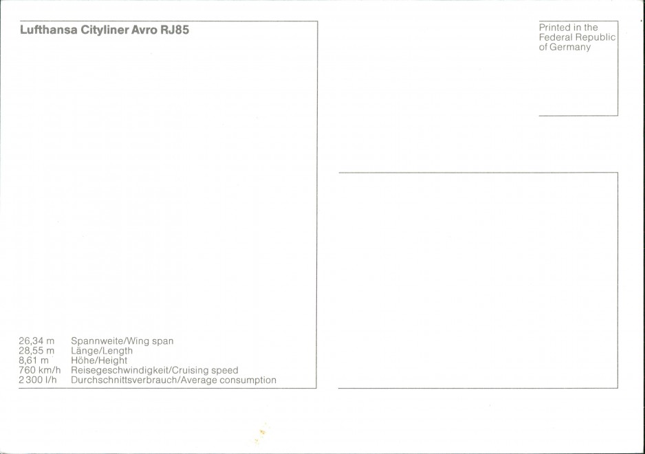 Postcart: Lufthansa Cityliner Avro RJ85 Flugwesen - Flugzeuge
