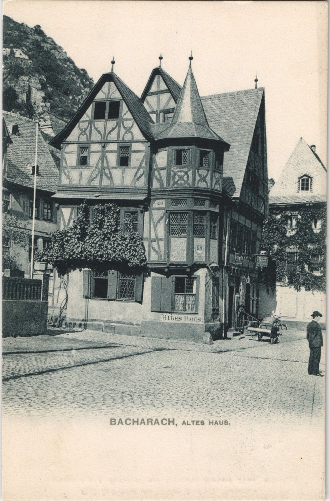 Postcart: Straßenpartie, Fachwerkhaus - Mann - Bacharach