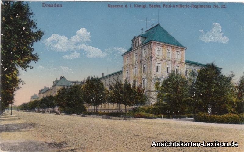 Postcart: Kaserne - Feld-Artillerie-Regiment No. 12 - Albertstadt-Dresden