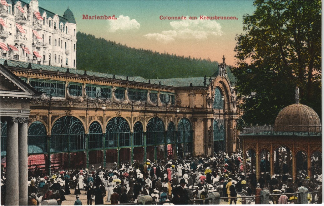 Postcart: Kolonnade mit Kreuzbrunnen - Mariánské Lázně