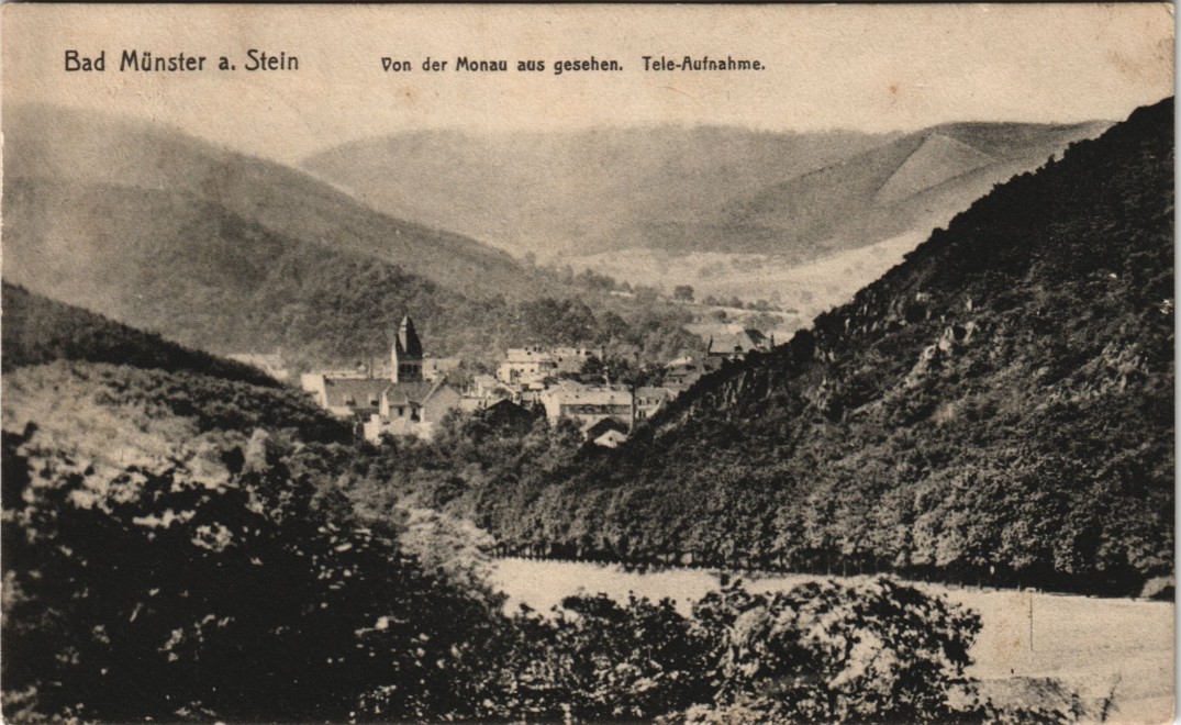- könnte ein Fehldruck sein, denn die AK-Daten (Bad Münster a. Stein und Monau, als auch das Foto passen nicht zusammen)