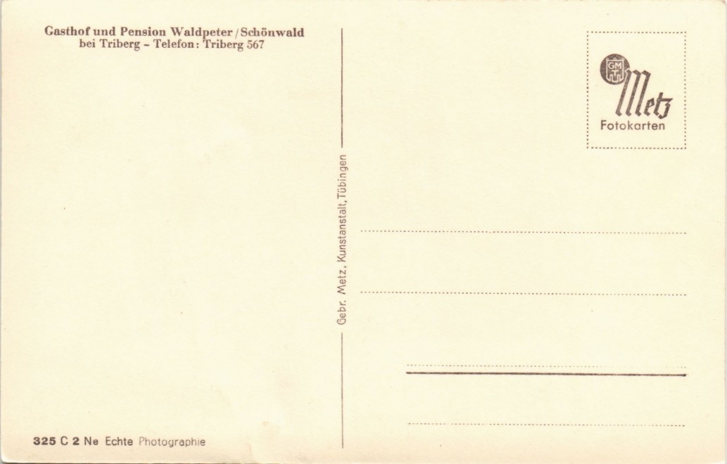 Postcart: Gasthof und Pension Waldpeter - Schönwald im Schwarzwald