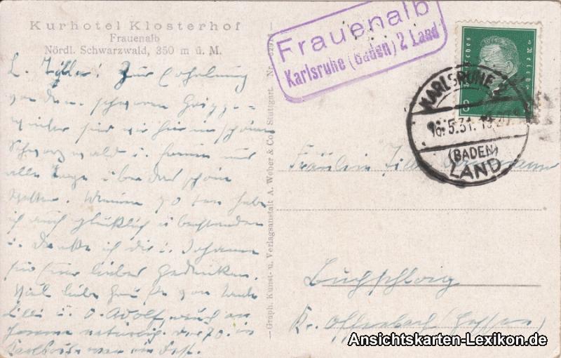 Postcart: Frauenalb - Kurhotel Klosterhof - Bad Herrenalb