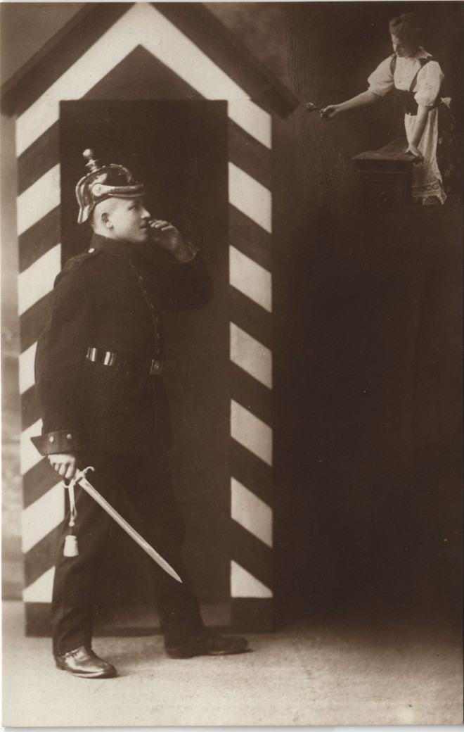 Postcart: Fotokunst Militaria Sachsen - Soldat und Frau