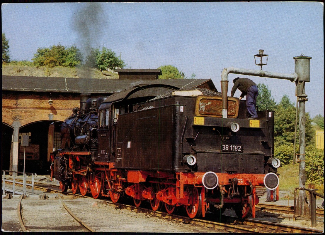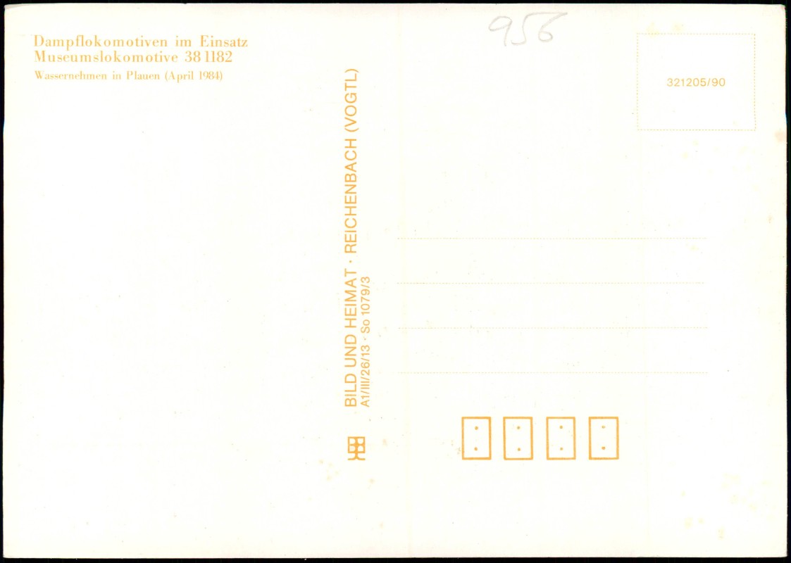Photo Card: Museums-Lokomotive 38 1182 Wassernehmen in Plauen (April 1981) - Plauen