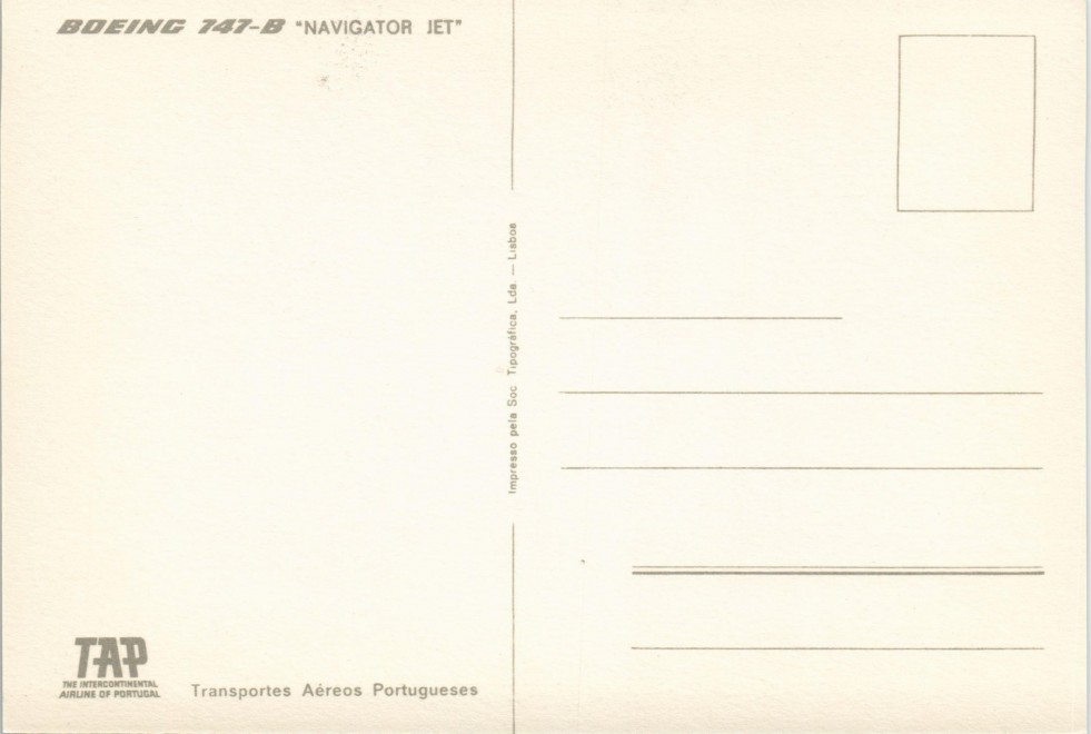Photo Card: BOEING 747-B "NAVIGATOR JET" TAP Flugzeug Airplane Avion