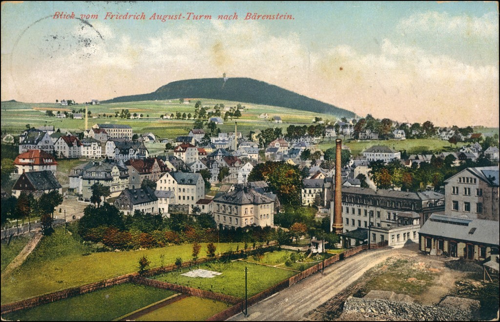 Postcart: Panorama mit Fabrik - Bärenstein (Erzgebirge)