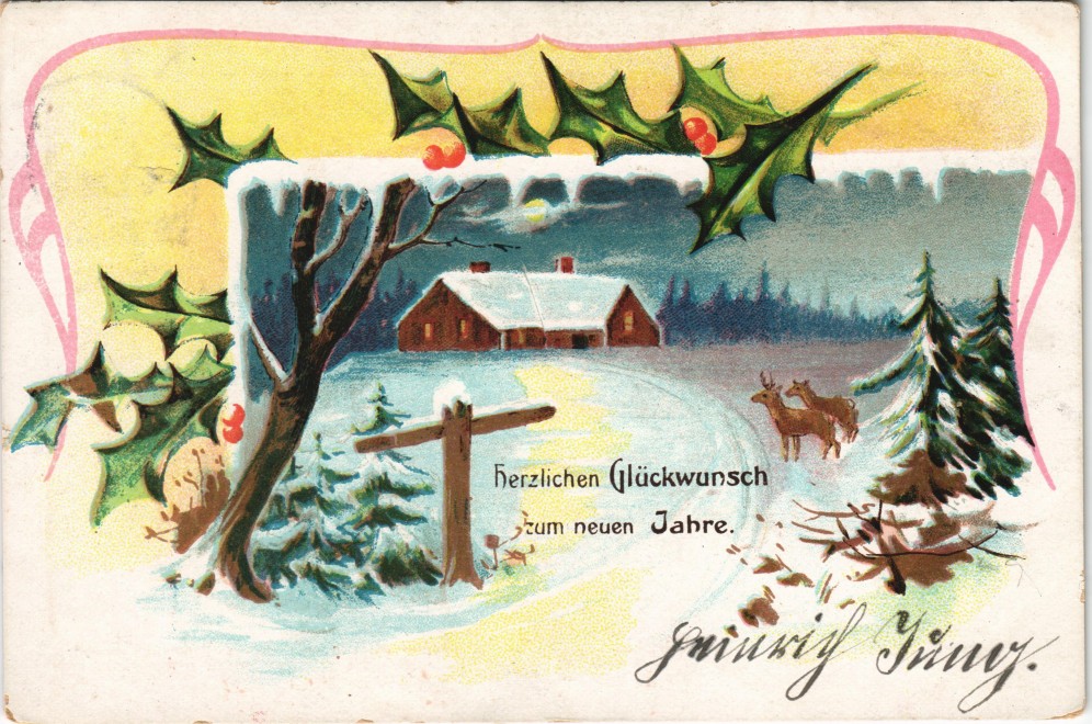 - Glückwunsch Neujahr Silvester Künstlerkarte Landschaft Winter