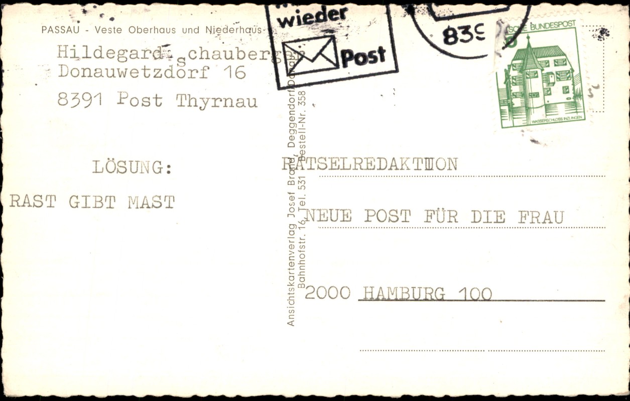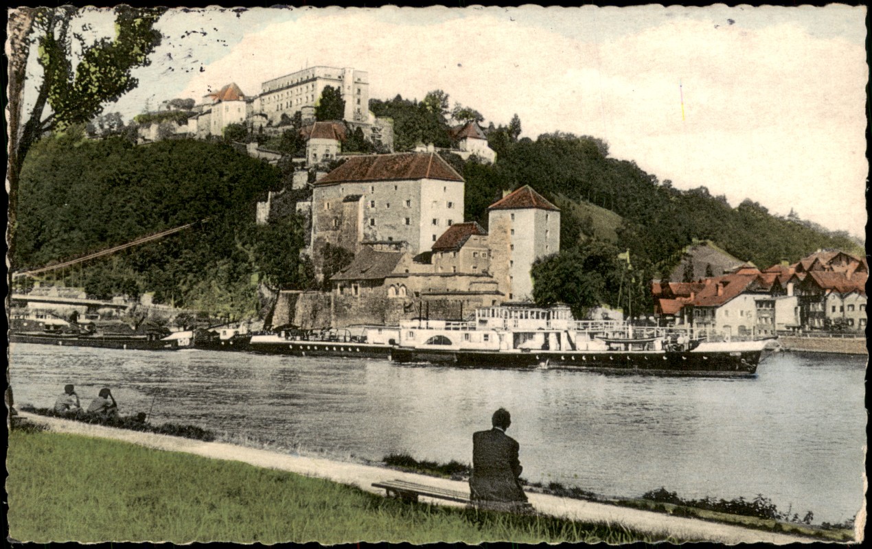 Postcart: Veste Niederhaus und Donau-Dampfer - Passau