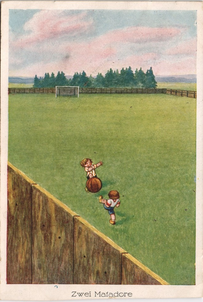 Postcart: Kinder Künstlerkarte Spaßkarte - Fußball Zwei Matadore