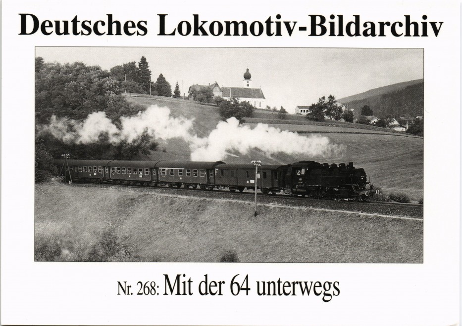 Postcart: Dampflokomotive Eisenbahn mit der 64 unterwegs