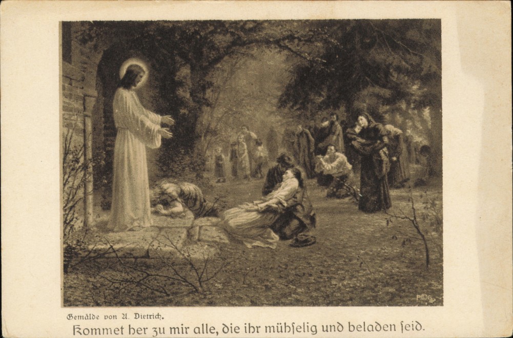 Postcart: Gemälde von A. Dietrich. kommet her zu mir alle, die ihr mübſelig und beladen ſeid.