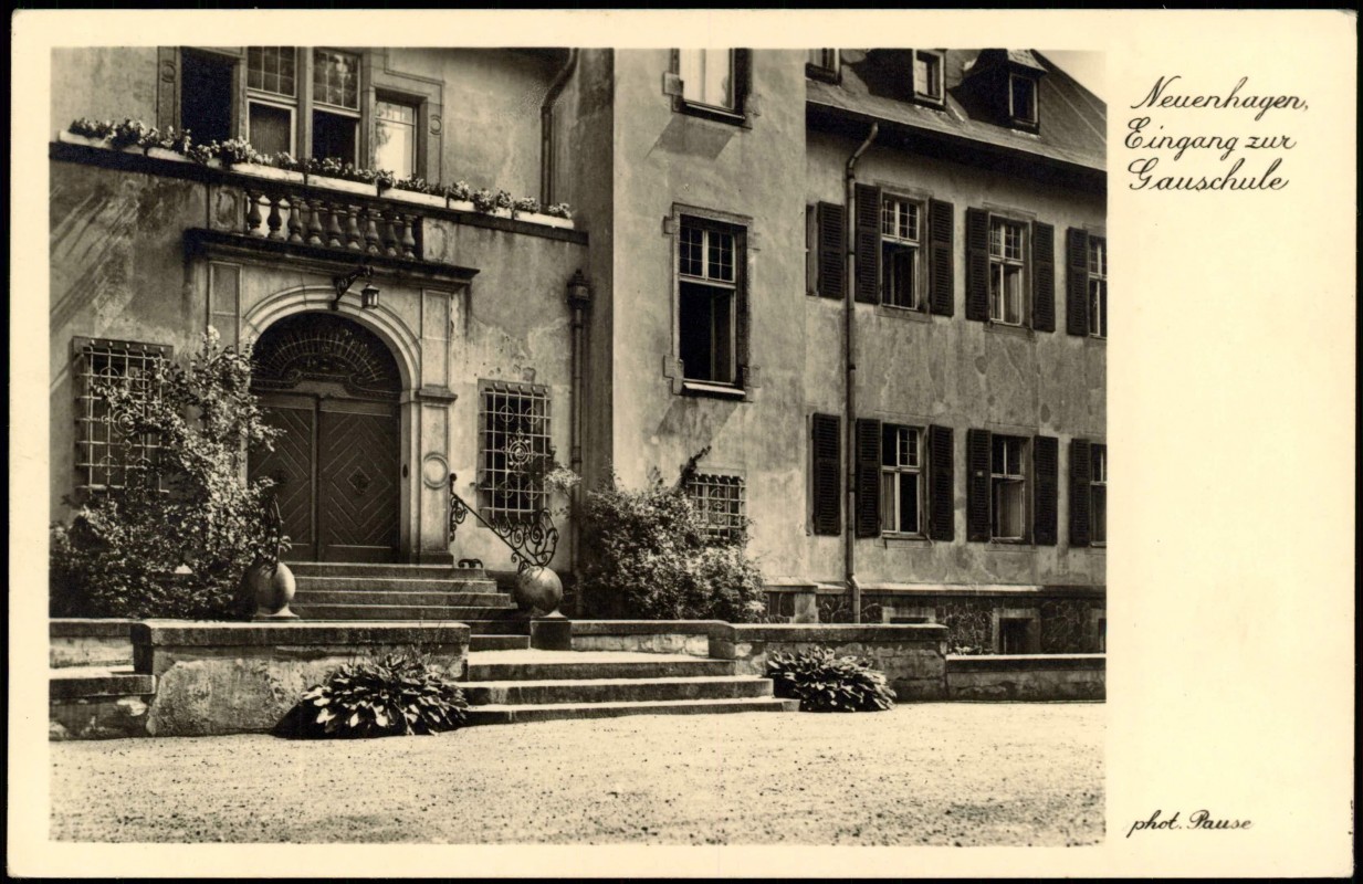 Photo Card: Eingang zur Gauschule Schule Schulgebäude - Neuenhagen bei Berlin