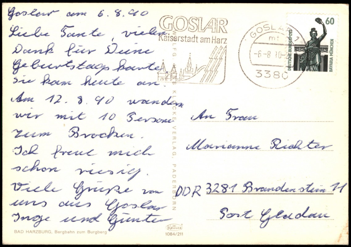 Photo Card: Bergbahn zum Burgberg, Gondelbahn im Harz - Bad Harzburg
