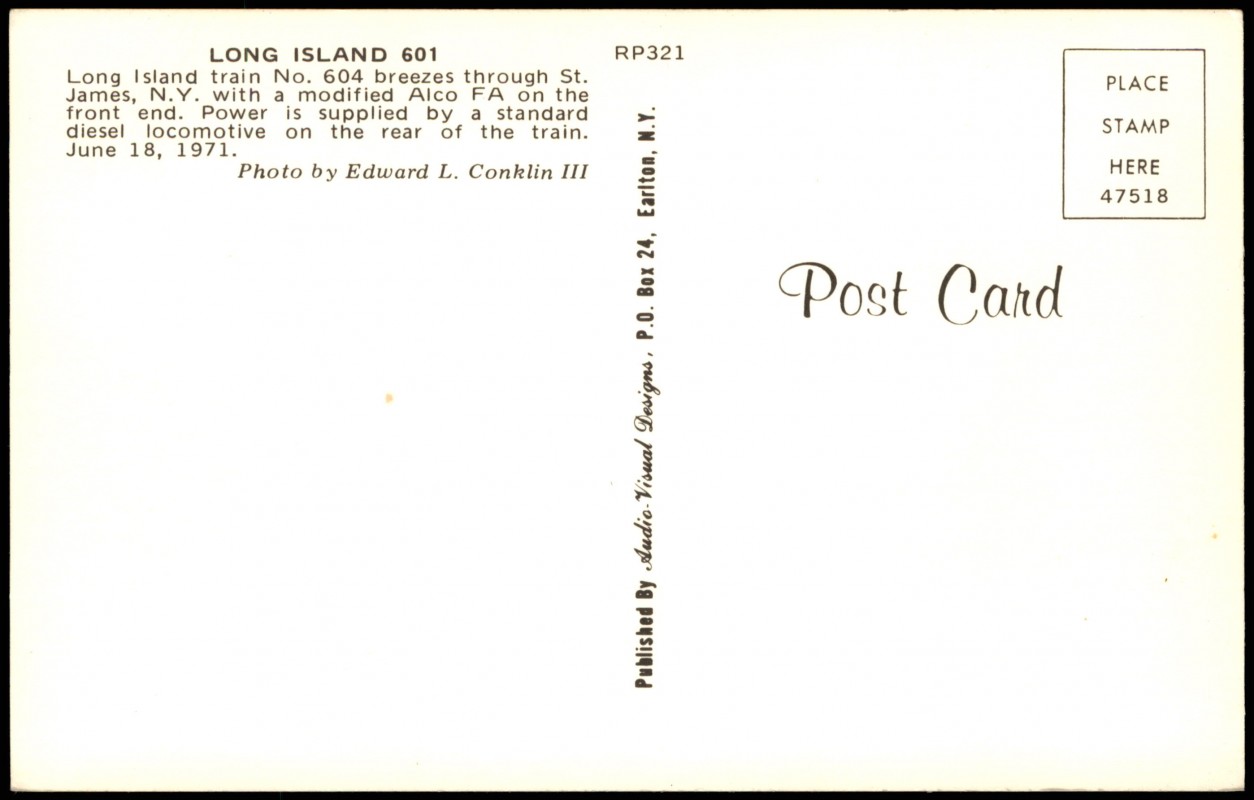 Photo Card: Long Island Train near St. James NY Eisenbahn Zug USA Railways