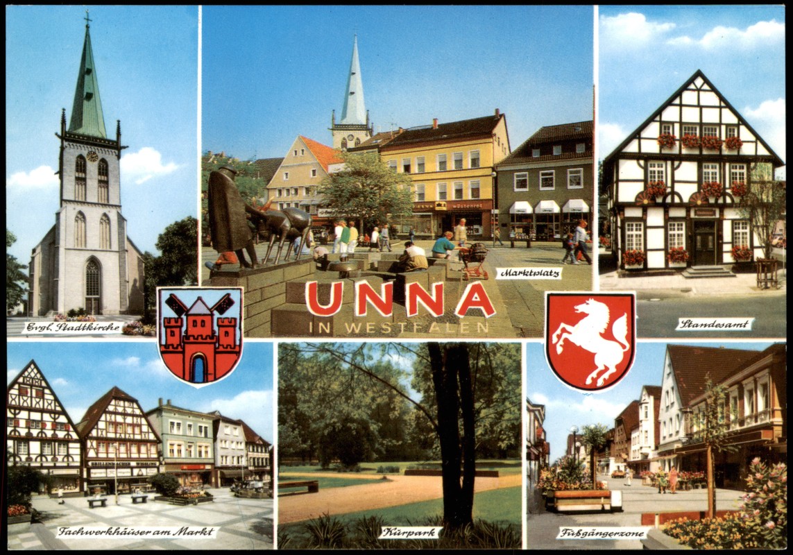Photo Card: Mehrbildkarte mit Kirche, Markt, Kurpark, Fußgängerzone - Unna