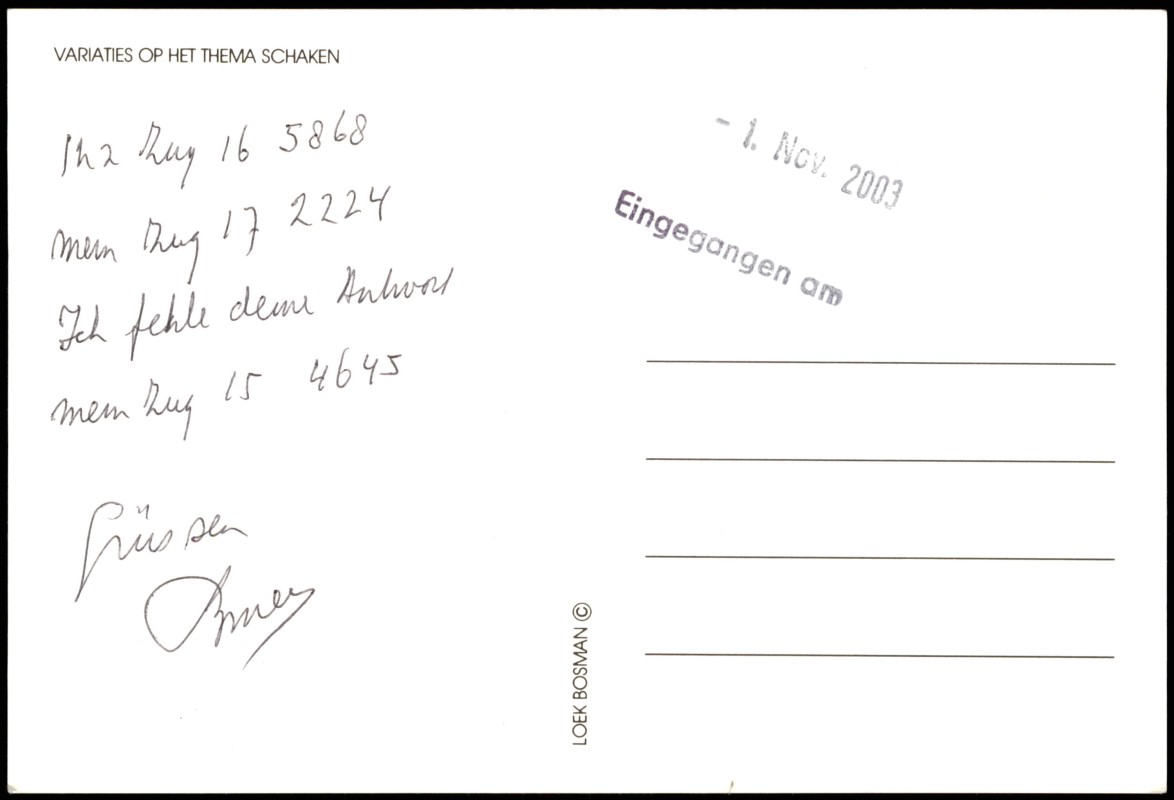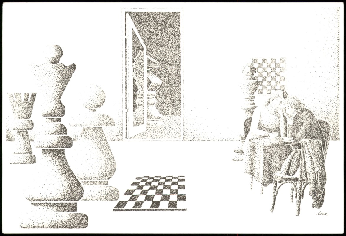 Postcart: VARIATIES OP HET THEMA SCHAKEN Schach Chess Illustration