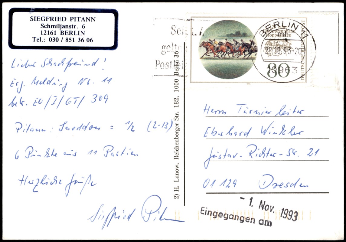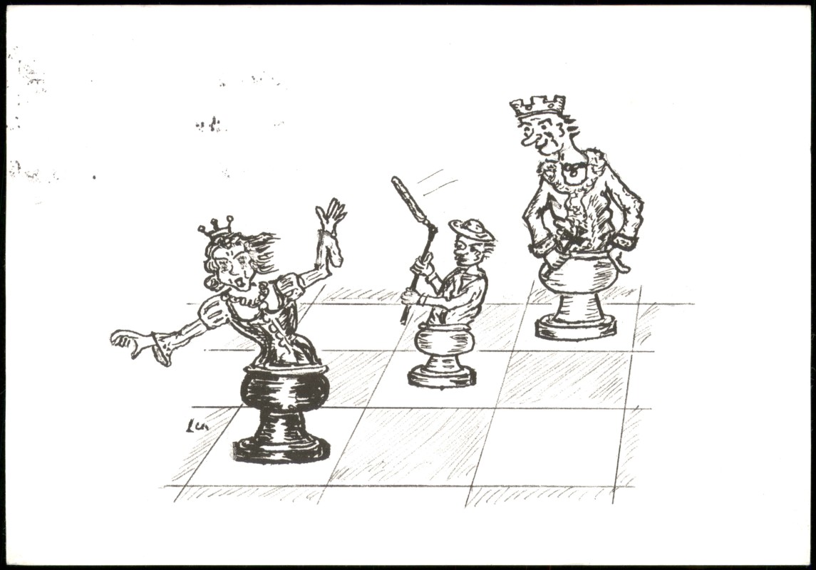 Postcart: Schach-Spiel (Chess) Motivkarte mit 3 lustigen Spielfiguren