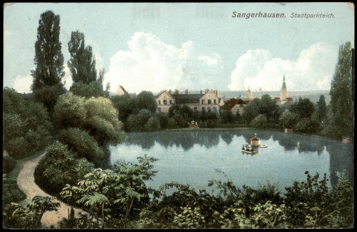 Postcart: Stadtparkteich. - Sangerhausen