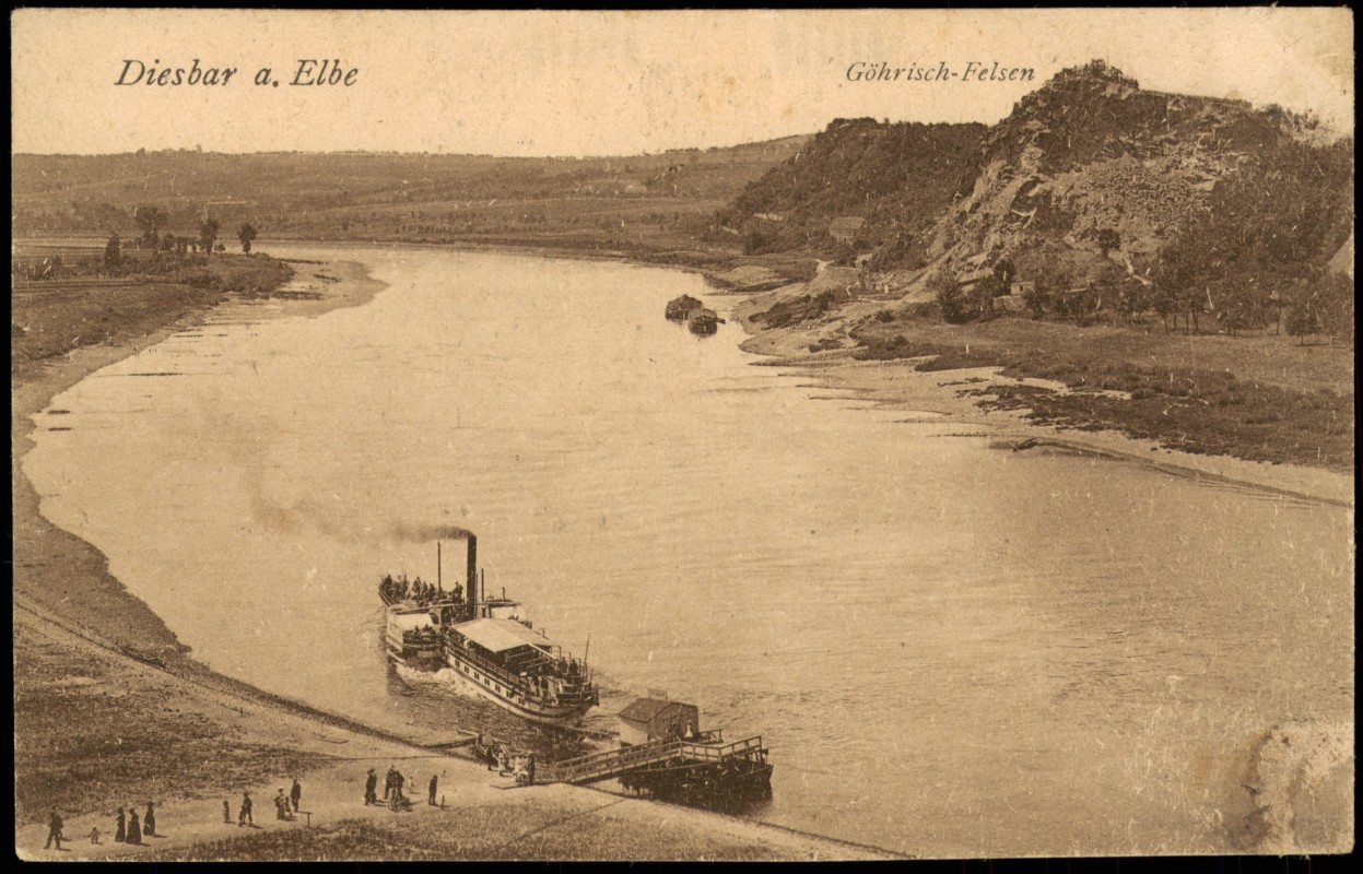 Photo Card: Elbe Blick mit Elbe Dampfer Schiff Blick Göhrisch-Felsen - Diesbar (Elbe)-Diesbar-Seußlitz-Nünchritz (Elbe)