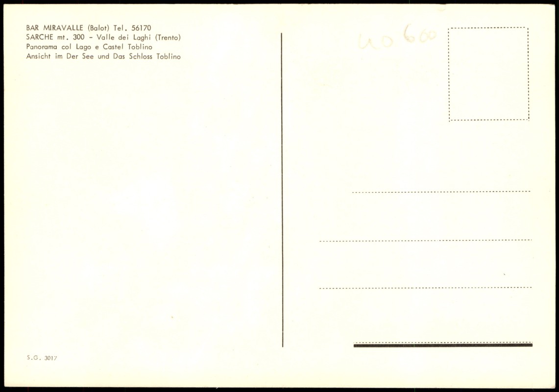- BAR MIRAVALLE SARCHE Valle dei Laghi (Trento) Panorama col Lago e Castel Toblino