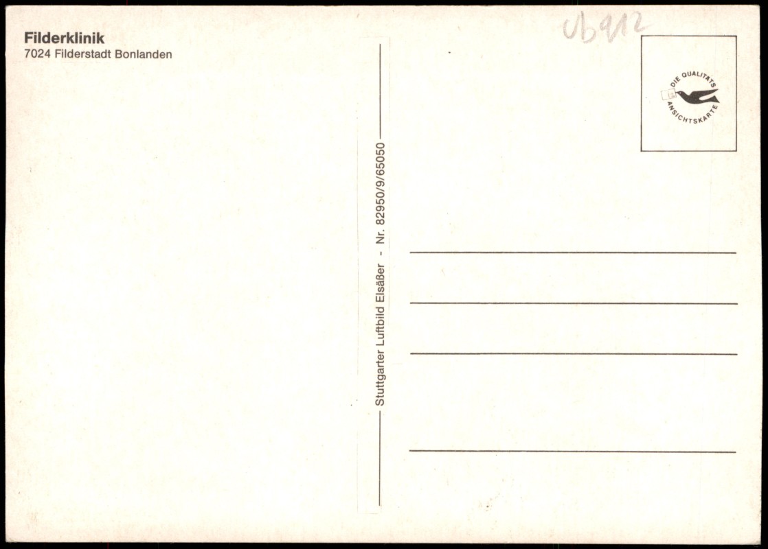 Photo Card: Filderklinik vom Flugzeug aus, Luftbild - Bonlanden (Kr. Biberach)-Filderstadt