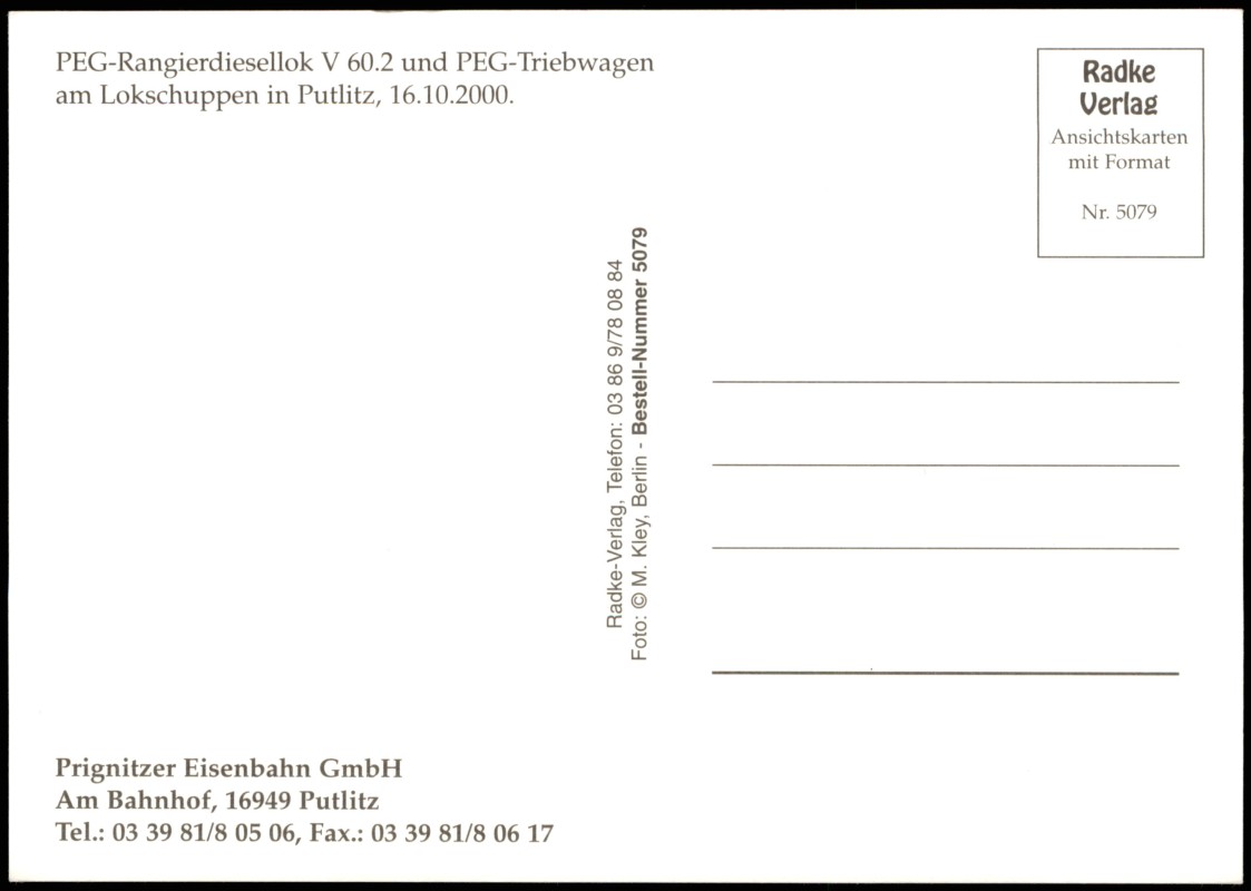 Photo Card: PEG-Rangierdiesellok und Triebwagen am Lokschuppen in Putlitz